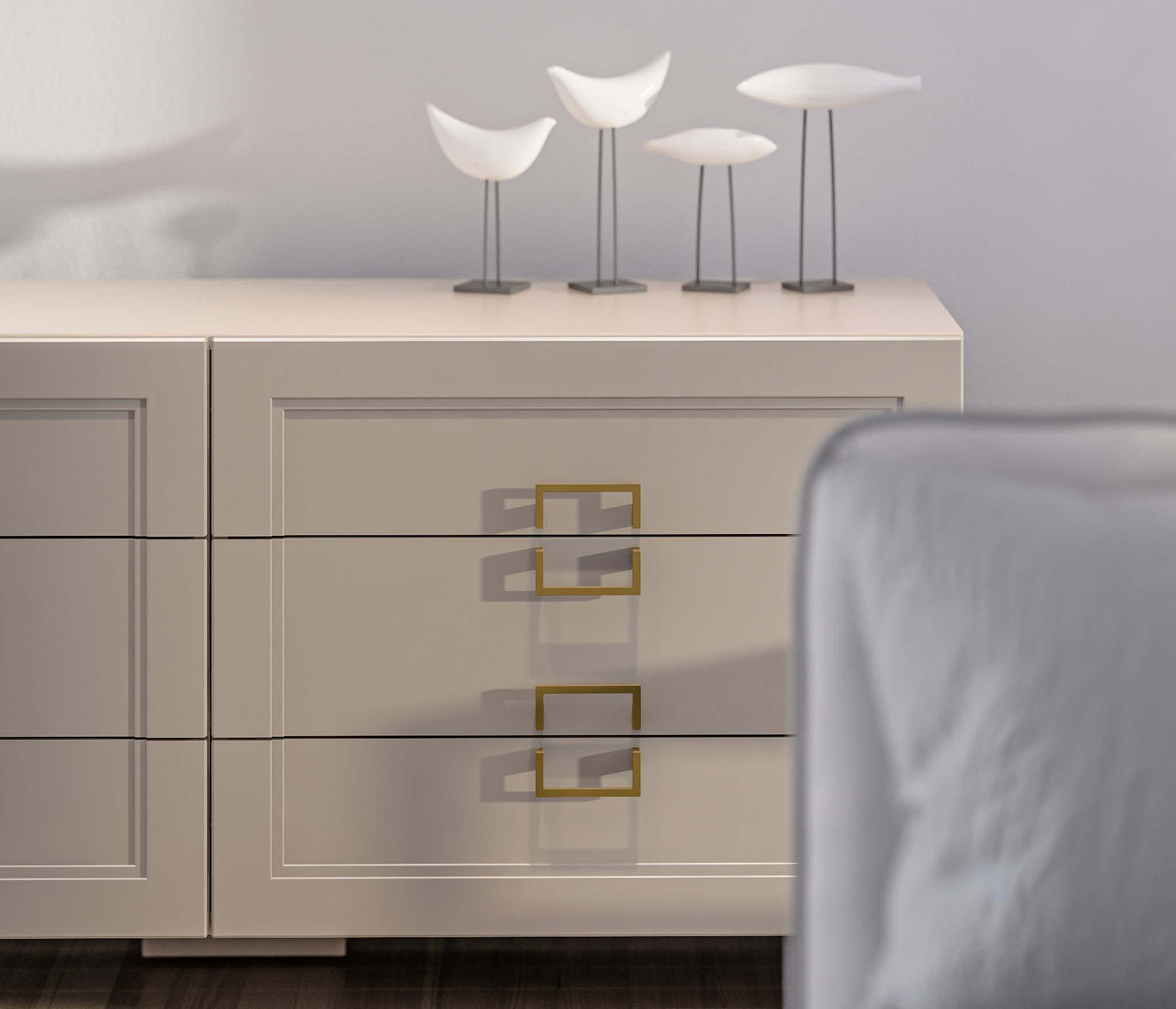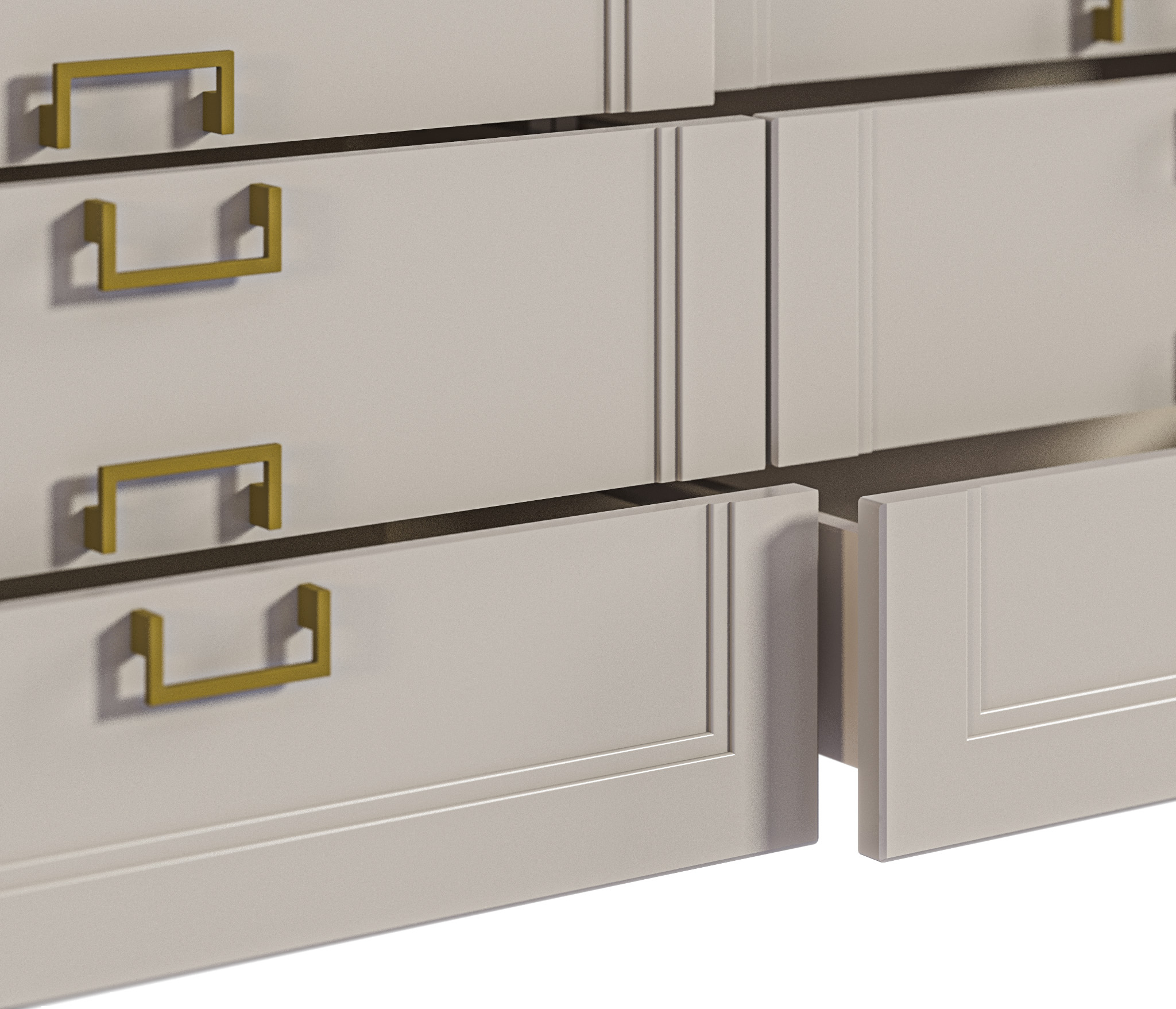 Золотистые ручки и ножки коллекции "Ассоль" добавляют неповторимый шик и изысканность, завершая образ тонким и стильным блеском. Эти акценты создают атмосферу роскоши и утонченности. Они играют роль визуального украшения, дополняя общий вид мебели и придавая ей особый шарм и элегантность.